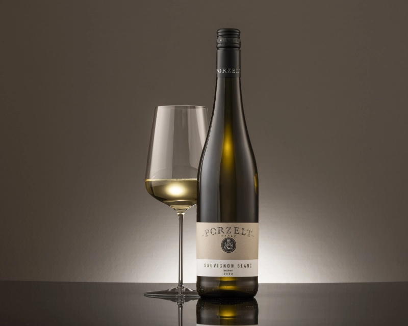 Glem blomster og tropisk støj – Porzelts gastronomiske Sauvignon Blanc er mineralsk, slank og knivskarp.